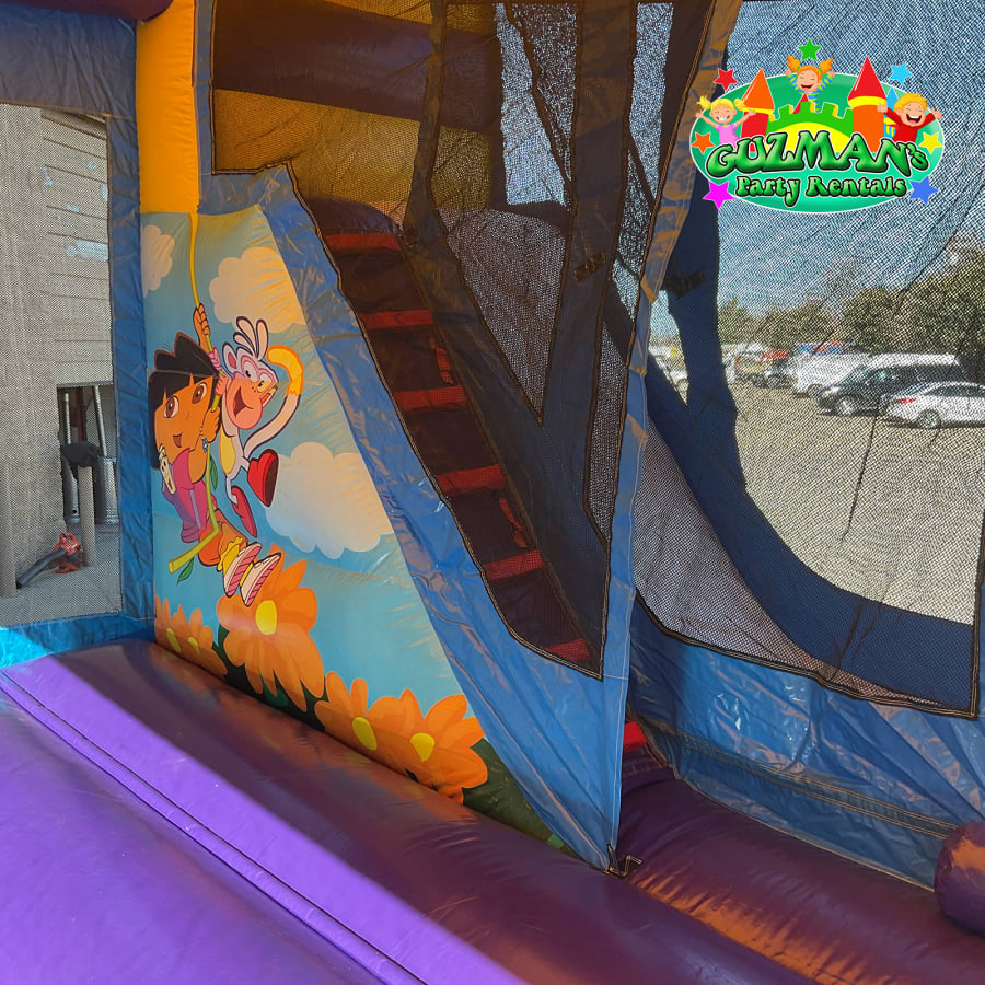 Whether it's a birthday party, a school event, or a community celebration, the 5 in 1 Dora Combo W/ Slide Inside is an instant hit. Kids will have endless fun while you enjoy peace of mind knowing they're safe and entertained. πŸ₯³