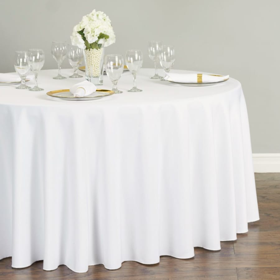 120in WHITE ROUND TABLECLOTH