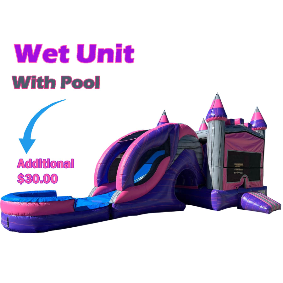 Turn any occasion into an unforgettable adventure with the Purple Marble Combo Slide Dry or Wet in Colorado. Whether you're planning a birthday party, family reunion, or a casual weekend get-together, this captivating slide is sure to be a hit! πŸŽ‰ Dive into excitement with its vibrant pink and purple colors that will enthrall kids of all ages.