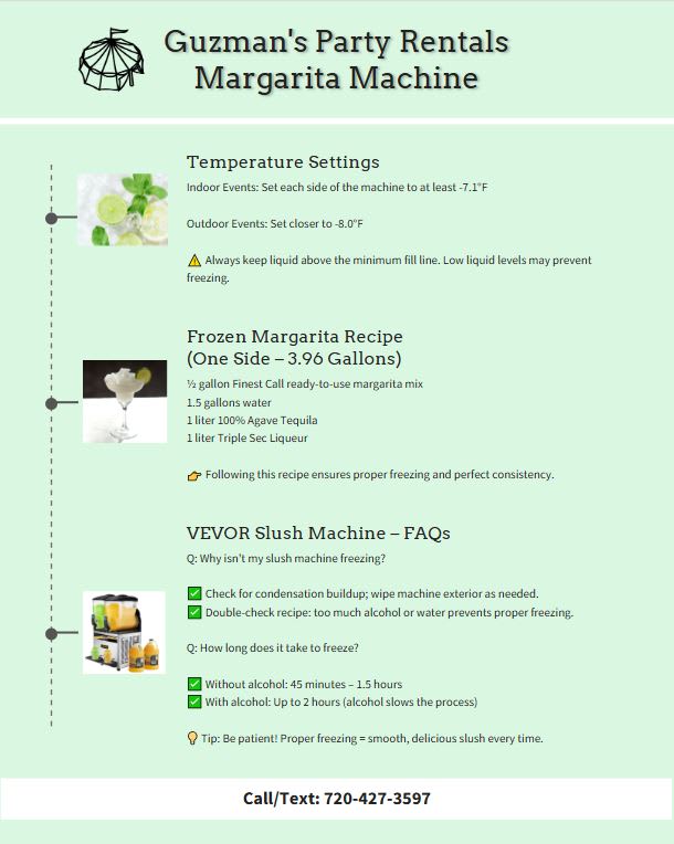 Ready to elevate your event with our Margarita Machine Rental service in Denver, Thornton, Commerce City, Aurora, Brighton, Boulder, Centennial, Parker, Erie, and Bennett? Contact us today to make your party the talk of the town!