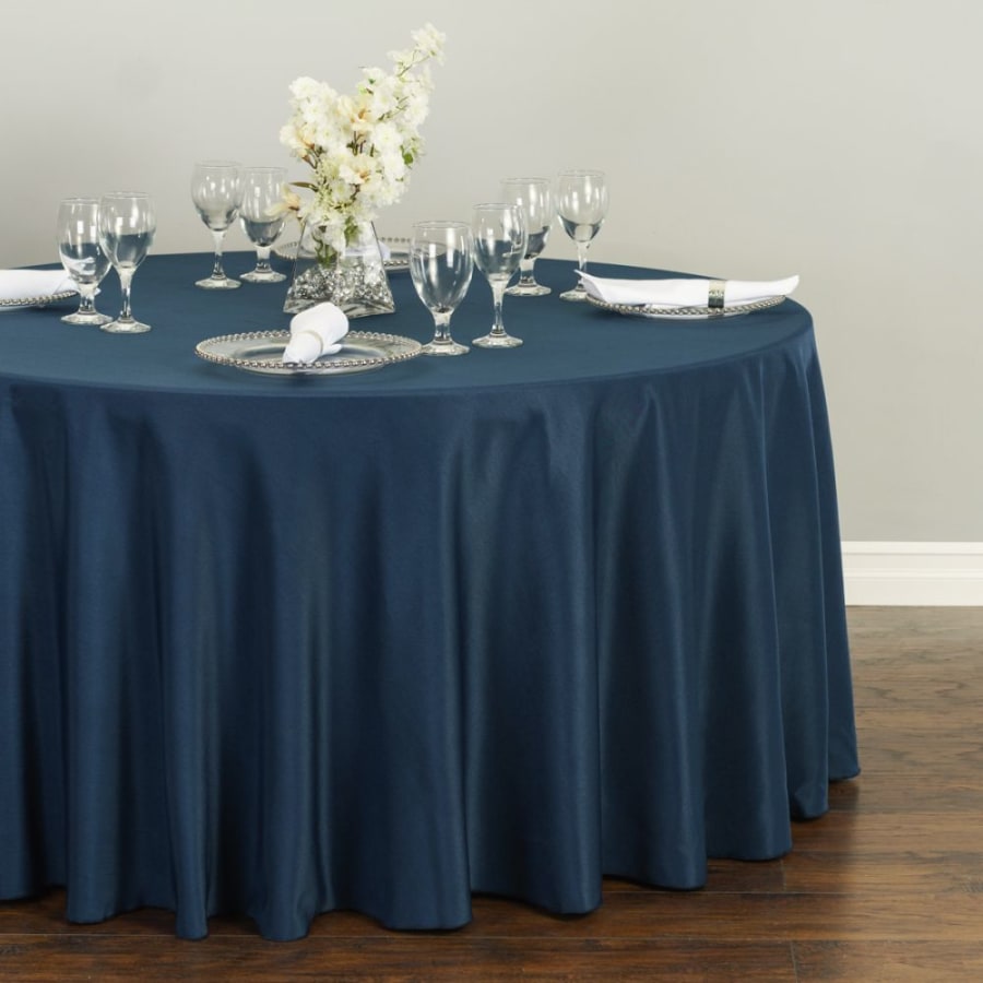 The 120in NAVY BLUE ROUND TABLECLOTH delivers a polished, timeless look for any formal setting. It fits 60” round tables with a full floor-length drop. Use it to create depth, contrast, and a refined finish at weddings, galas, corporate dinners, and upscale receptions. Professional cleaning ensures each linen arrives fresh and ready. ✨ This tablecloth is built to look great and perform reliably at every event. Reserve the 120in NAVY BLUE ROUND TABLECLOTH today to elevate your event with timeless color and flawless!