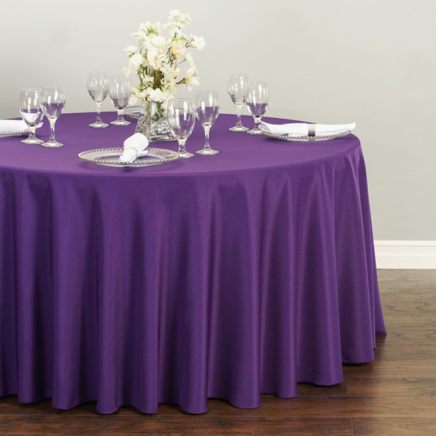 The 120in PURPLE ROUND TABLECLOTH delivers a bold splash of color and instant sophistication. Designed to fit a 60" round table with a full floor-length drop. Perfect for weddings, birthdays, quinceañeras, galas, school events, and themed celebrations. Simple to style. Reliable fit. High impact. The 120in PURPLE ROUND TABLECLOTH creates visual depth and cohesion across a room. Use it to anchor a color palette or to make tables stand out. It conceals table legs and creates a clean silhouette for photography. Professionally cleaned before every rental to ensure a pristine finish. Reserve the 120in PURPLE ROUND TABLECLOTH today to elevate your décor. Click to check availability and secure your date. Limited quantities for peak seasons. ✨🎉💜
