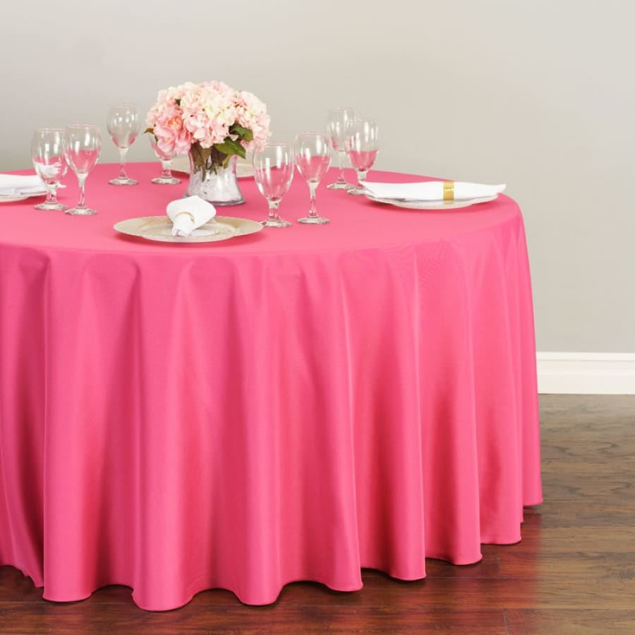 120in FUCHSIA ROUND TABLECLOTH. Bright, eye-catching fuchsia brings instant energy to any room. Designed for 60" round tables, this full floor-length linen delivers a polished, professional look for weddings, quinceañeras, birthdays, showers, and themed events. Reliable choice for both casual parties and upscale events. β¨The 120in FUCHSIA ROUND TABLECLOTH is professionally cleaned between uses to ensure hygiene and quality. Ideal for rentals, it arrives ready to drape and impress. Reserve now to make your event look amazing!