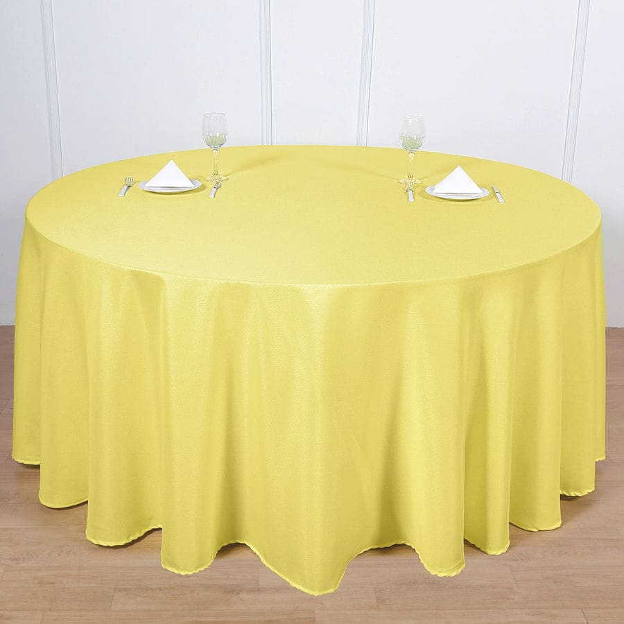 The 120in YELLOW ROUND TABLECLOTH brings bold color and full coverage to any celebration. Designed to fit 60" round tables with a full floor-length drop, this eye-catching tablecloth creates a warm, cheerful atmosphere for birthdays, school events, summer parties, and themed gatherings. Book the 120in YELLOW ROUND TABLECLOTH to transform ordinary tables into lively, memorable displays. Reserve now to secure this vibrant option for your next celebration. Professionally cleaned before every rental, it offers a polished look that brightens your décor instantly. ✨