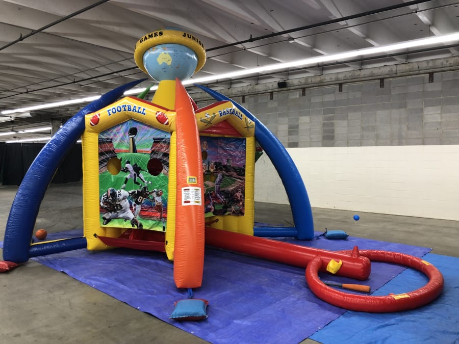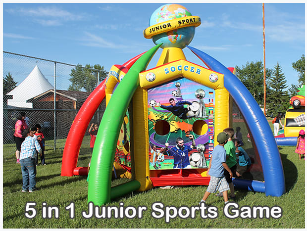 Looking to add an extra dose of excitement to your next birthday party, community event, church event, school event, or fundraiser? Our 5 in 1 Junior Sport Games inflatable interactive game is the perfect choice! π