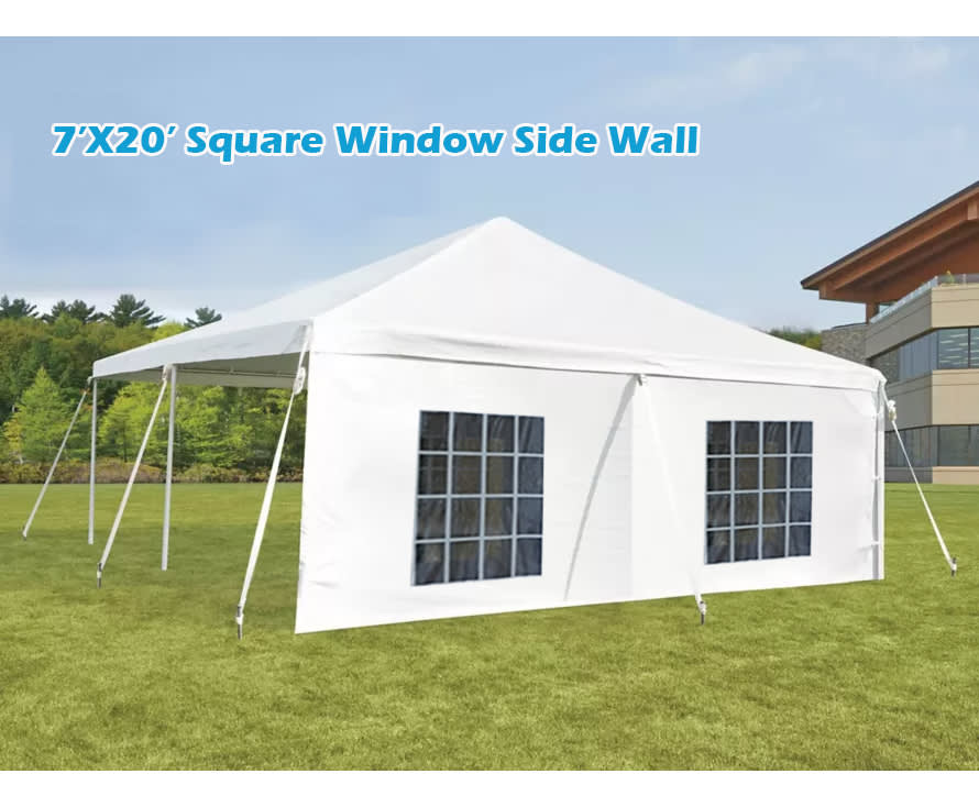 Don't let unpredictable weather ruin your outdoor event—choose our 7'x20' square window side wall and ensure that your guests have a memorable and comfortable experience from start to finish. Contact us today to learn more about our tent rental options!