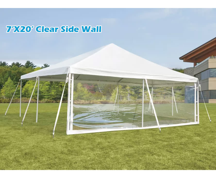 Make your outdoor event a hit with our 7'x20' Clear Side Wall! Perfect for weddings, corporate events, community gatherings, and birthday partieS, this side wall is a must-have accessory to provide shade and protection for your guests. 🎪