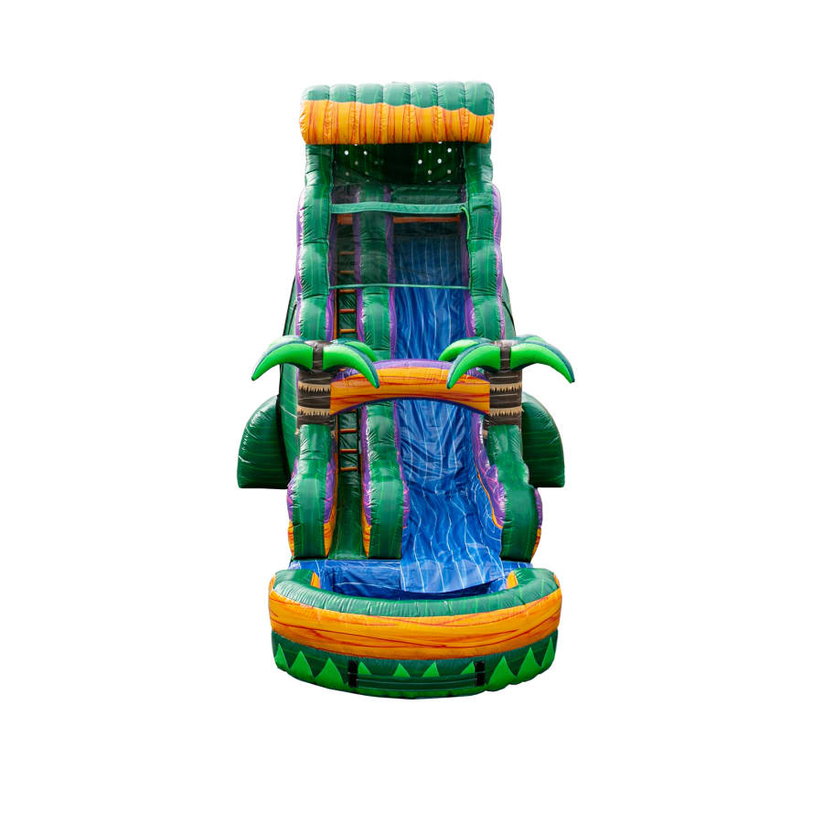 Rent the 22Ft Mardi Gras Falls Water Slide for high-energy cooling fun. This commercial-grade inflatable delivers durability and excitement. Bold purple, green, and gold colors create instant visual impact. Ideal for parties, festivals, and large events where guests want an adrenaline rush and a way to beat the heat.